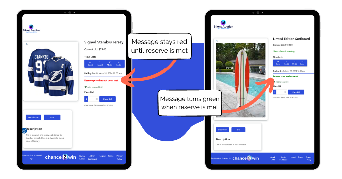 With Chance2Win, you can display all your auction items securely and attractively. Easily upload stunning images, detailed descriptions, and set minimum bid amounts in just a few simple steps— all from one convenient dashboard.